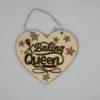 Celebrate the love of baking with this beautifully crafted laser-cut heart made from 3mm basswood plywood. The design features the words “Baking Queen” elegantly engraved, surrounded by charming images of a rolling pin, spatula, whisk, and scattered stars. The natural wood finish highlights the delicate details, creating a warm and inviting look.