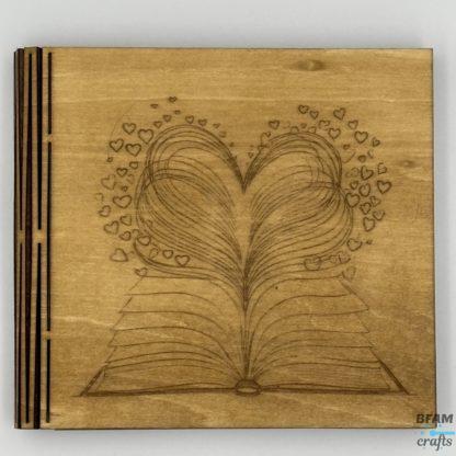 - Engraved with an intricate design of a book, illustrated with love hearts cascading outward, symbolising love and warmth.