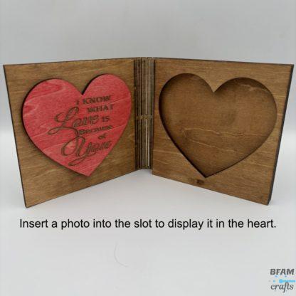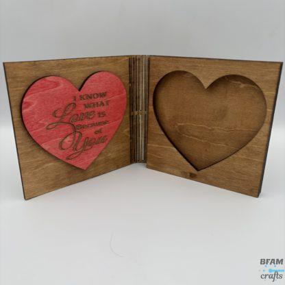 - The interior stained in a contrasting deep brown mahogany colour to emphasise the rich tone of the engraved red heart.