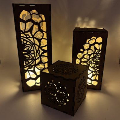 Set of three wooden tea light lanterns