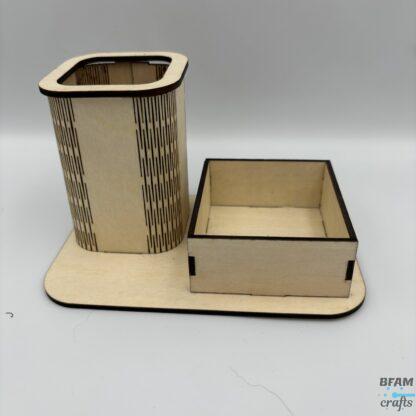 Keep your workspace neat and organised with this beautifully crafted wooden desktop tidy. Made from 3mm basswood ply, this compact organiser is both functional and stylish.